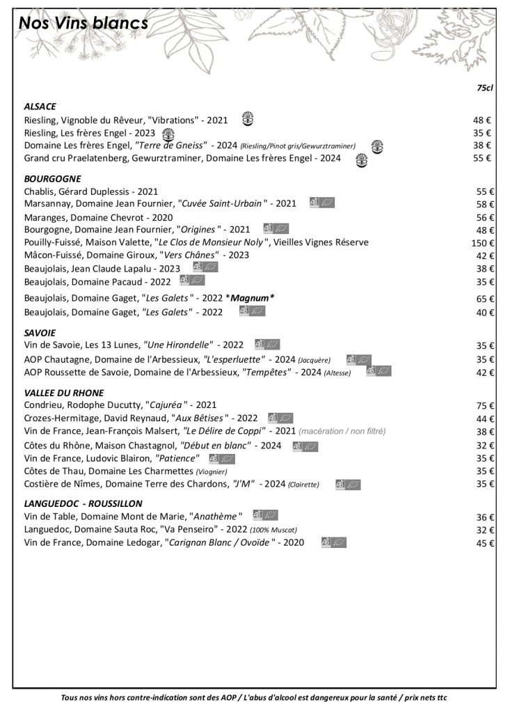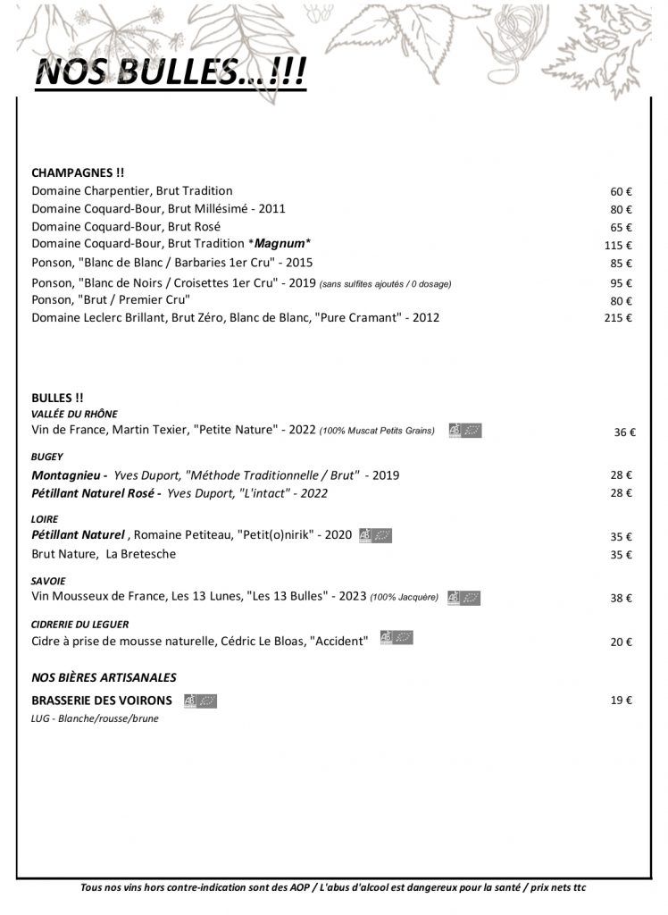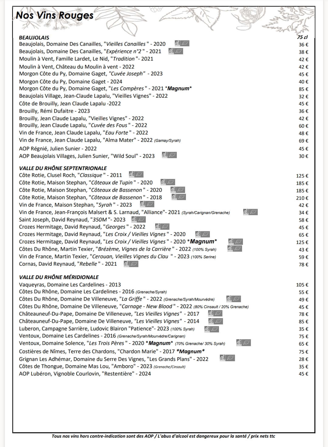 Dîner du Samedi 14 février : 90€ ttc /personne (hors boissons)